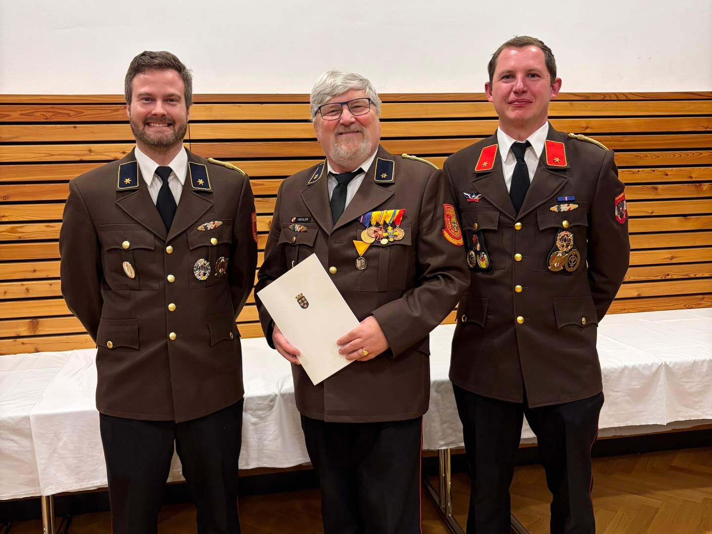 Des Weiteren erhielten unsere Kameraden Ferdinand Riegler und Martin Preineder das Ehrenzeichen, jedoch für sage und schreibe 40 Jahre im Dienste der Freiwilligen Feuerwehr 4️⃣0️⃣🔥