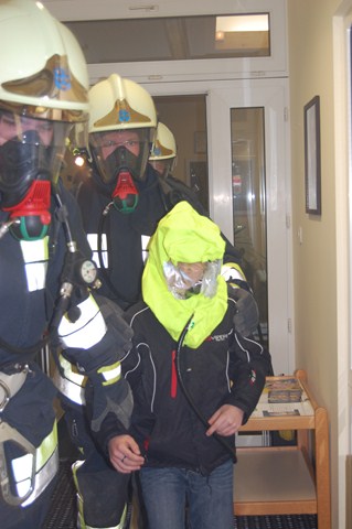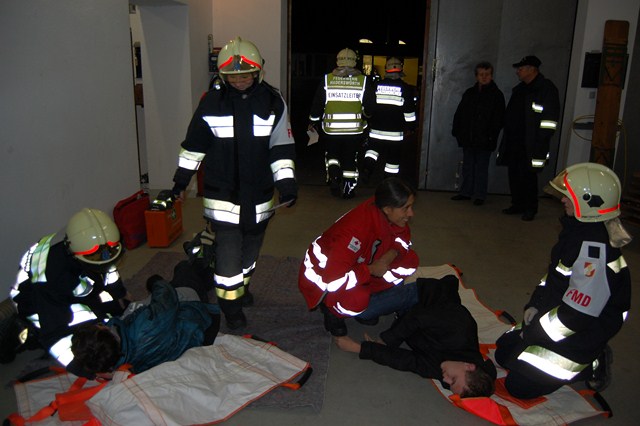 Von den Feuerwehrleuten konnte die Rettung der 10 im Keller versteckten Kinder nur unter schwerem Atemschutz durchgeführt werden. Bereits 10 Minuten nach der Alarmierung konnte der Übungsleiter Brandinspektor Hannes Harruk den ersten Atemschutztrupp auf die Suche schicken. Nach 35 Minuten hatten sieben Atemschutztrupps das gesamte Areal durchsucht und die verunfallten Kinder dem Team des Feuerwehrmedizinischen Dienstes und den First Respondern, zur weiteren Versorgung, übergeben. Um den Feuerwehrleuten das Arbeiten in den engen Kellergängen zu erleichtern, wurde ein Druckbelüfter eingesetzt. Durch dessen Einsatz können verqualmte Räume sehr rasch rauchfrei gemacht werden. Da die Kellerräume des Kindergartens relativ voll mit brennbarem Gut sind, wurde zum Abschluss auch noch einmal jeder Raum mit der Wärmebildkamera nach Verletzten durchsucht. Wegen der sehr schwierigen Rettung über das enge Treppenhaus, und dem Fehlen eines weiteren Fluchtweges aus dem Keller wurde auch noch versucht, zwei Kinder über ein enges Kellerfenster ins Freie zu heben.